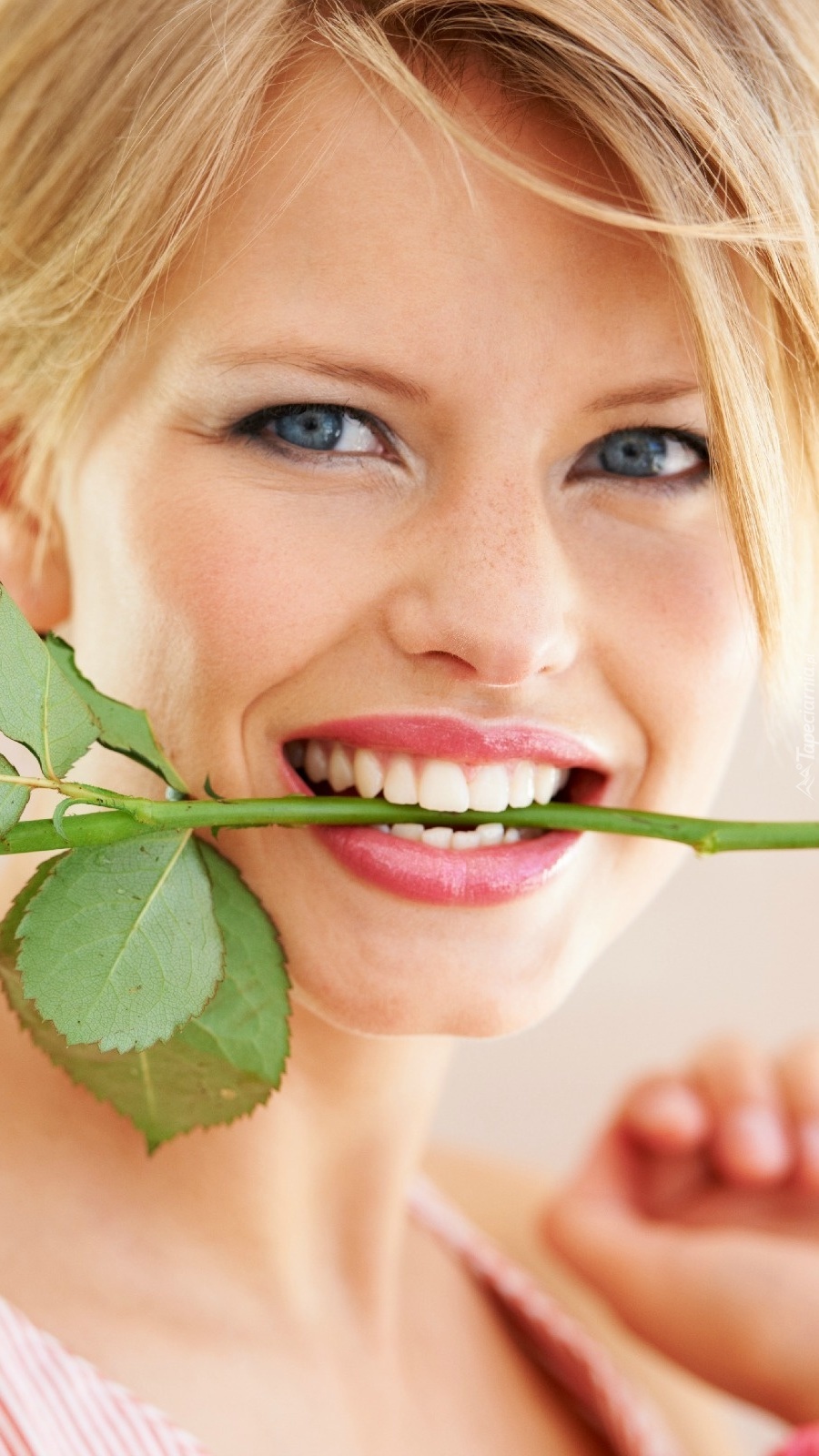 Edytor tapety: Blondynka z łodygą w ustach