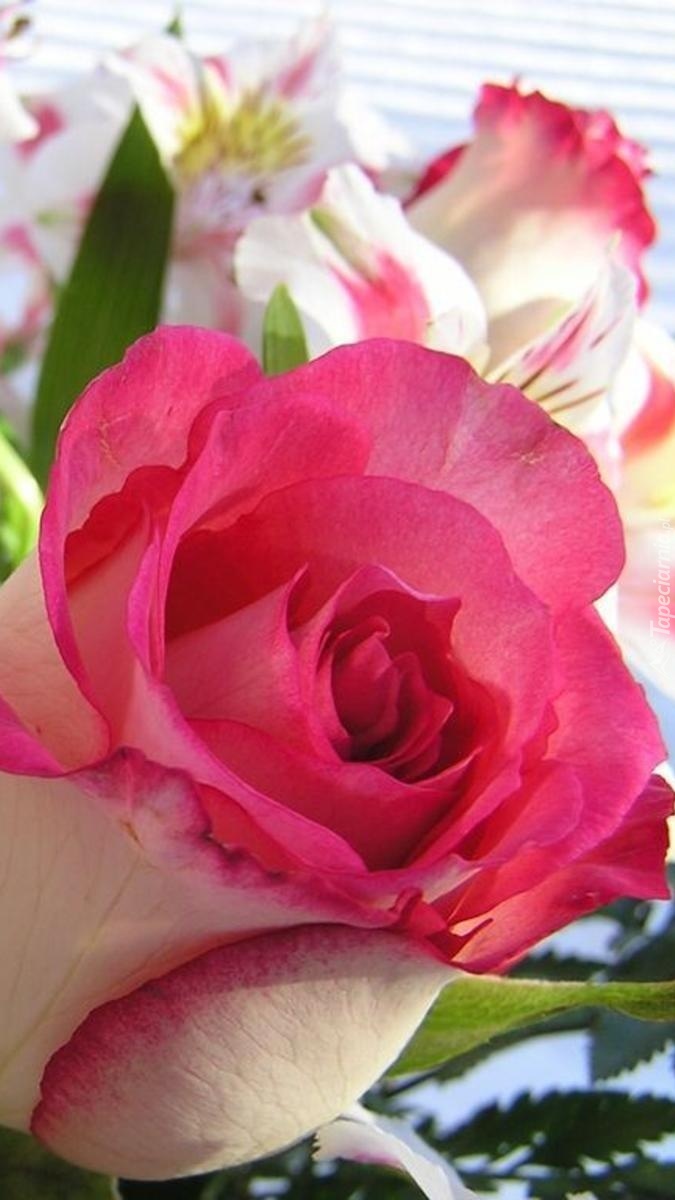 Edytor tapety: Bukiet z róż i alstremerii