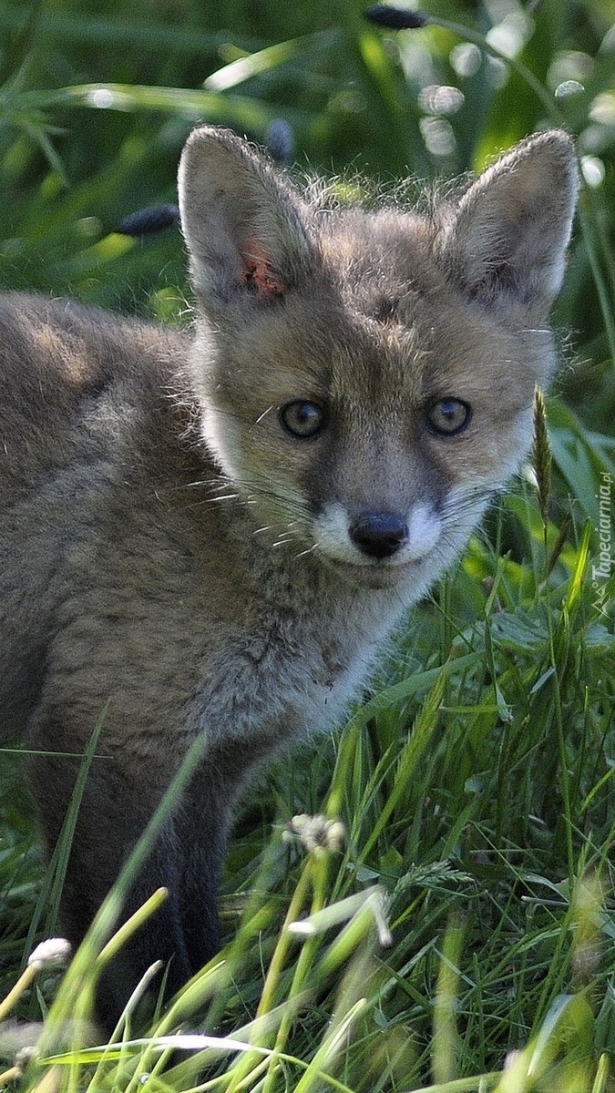 Edytor tapety: Przestraszony lisek w trawie
