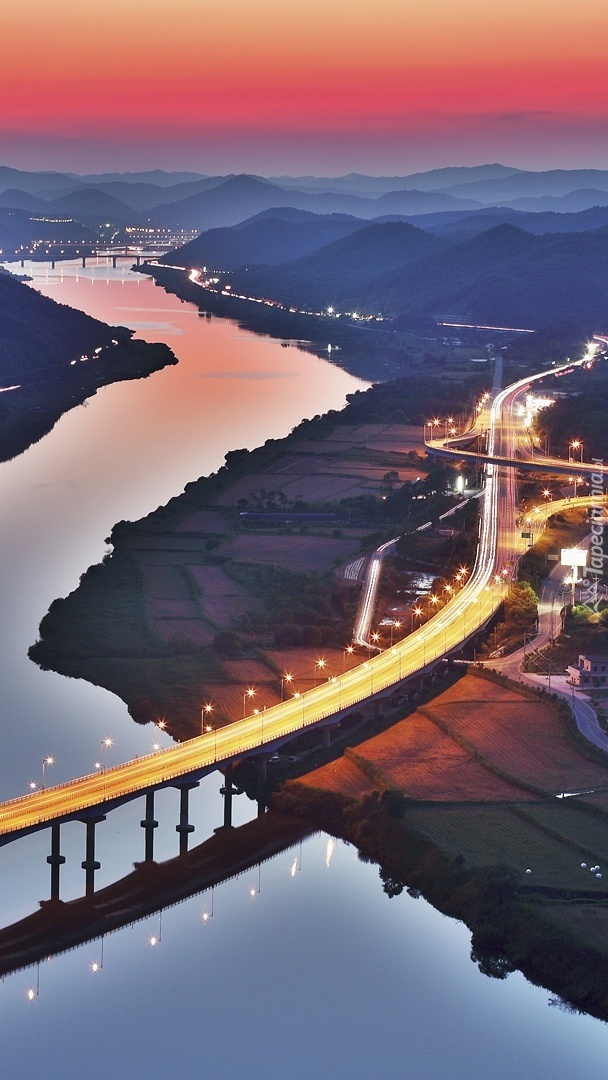 Edytor tapety: Droga i most nad górską rzeką