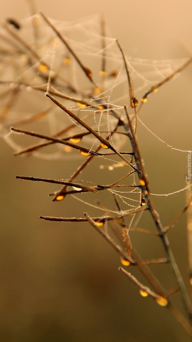 Edytor tapety: Pajęczyna w kroplach na roślinie