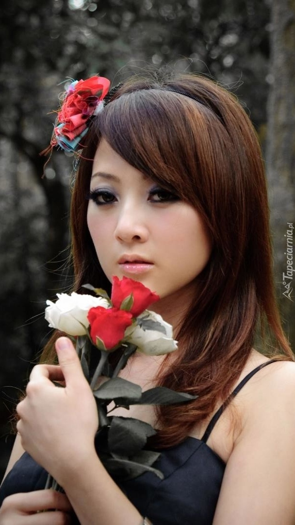 Edytor tapety: Azjatka z kwiatami