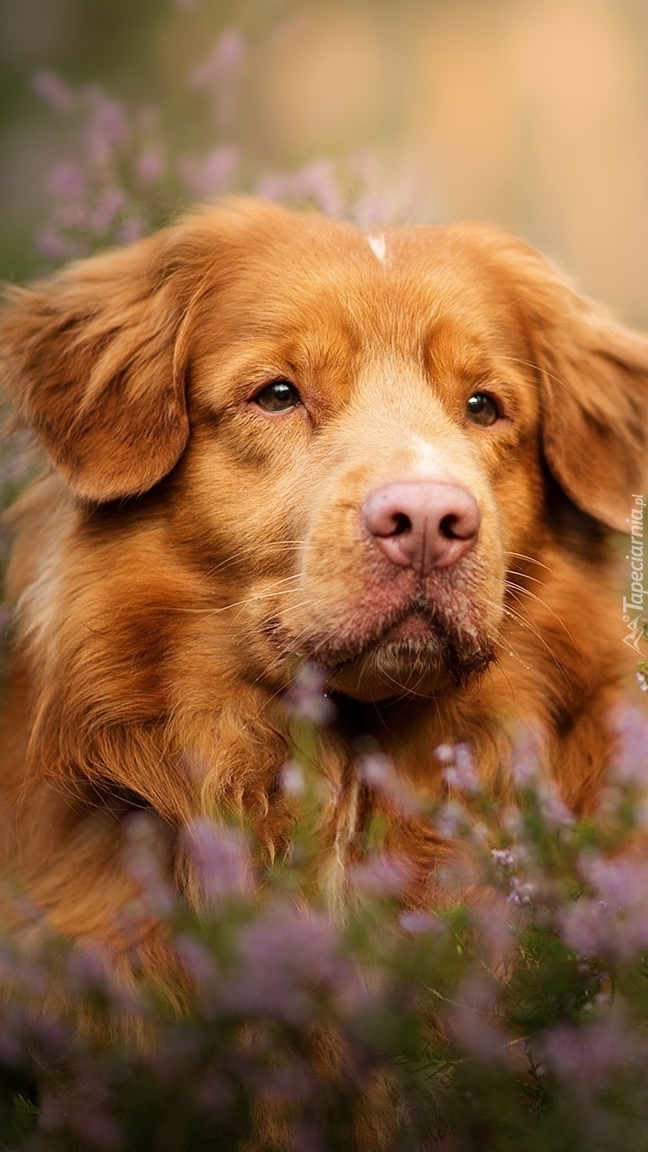 Edytor tapety: Retriever z Nowej Szkocji we wrzosach
