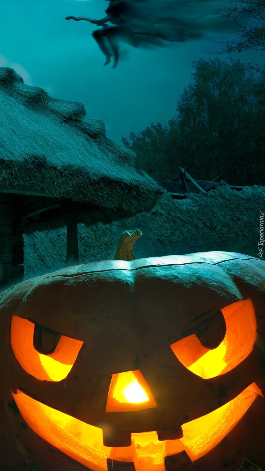 Edytor tapety: Halloweenowa dynia nocą