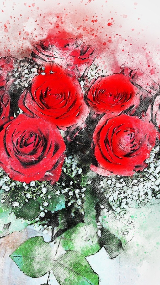 Edytor tapety: Bukiet czerwonych róż w paintography