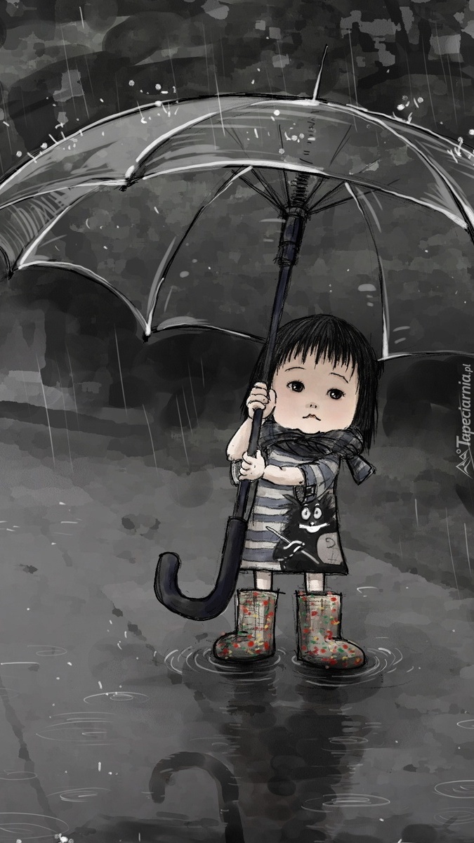 Edytor tapety: Maleństwo z ogromnym parasolem