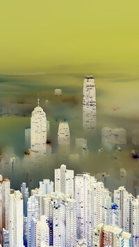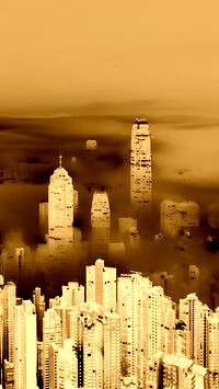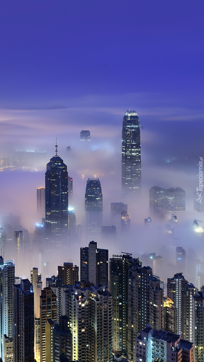 Edytor tapety: Zamglone drapacze chmur w Hong Kongu