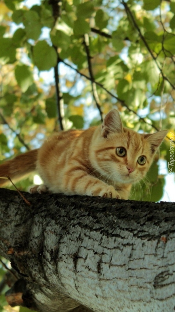 Edytor tapety: Rudy kotek na drzewie