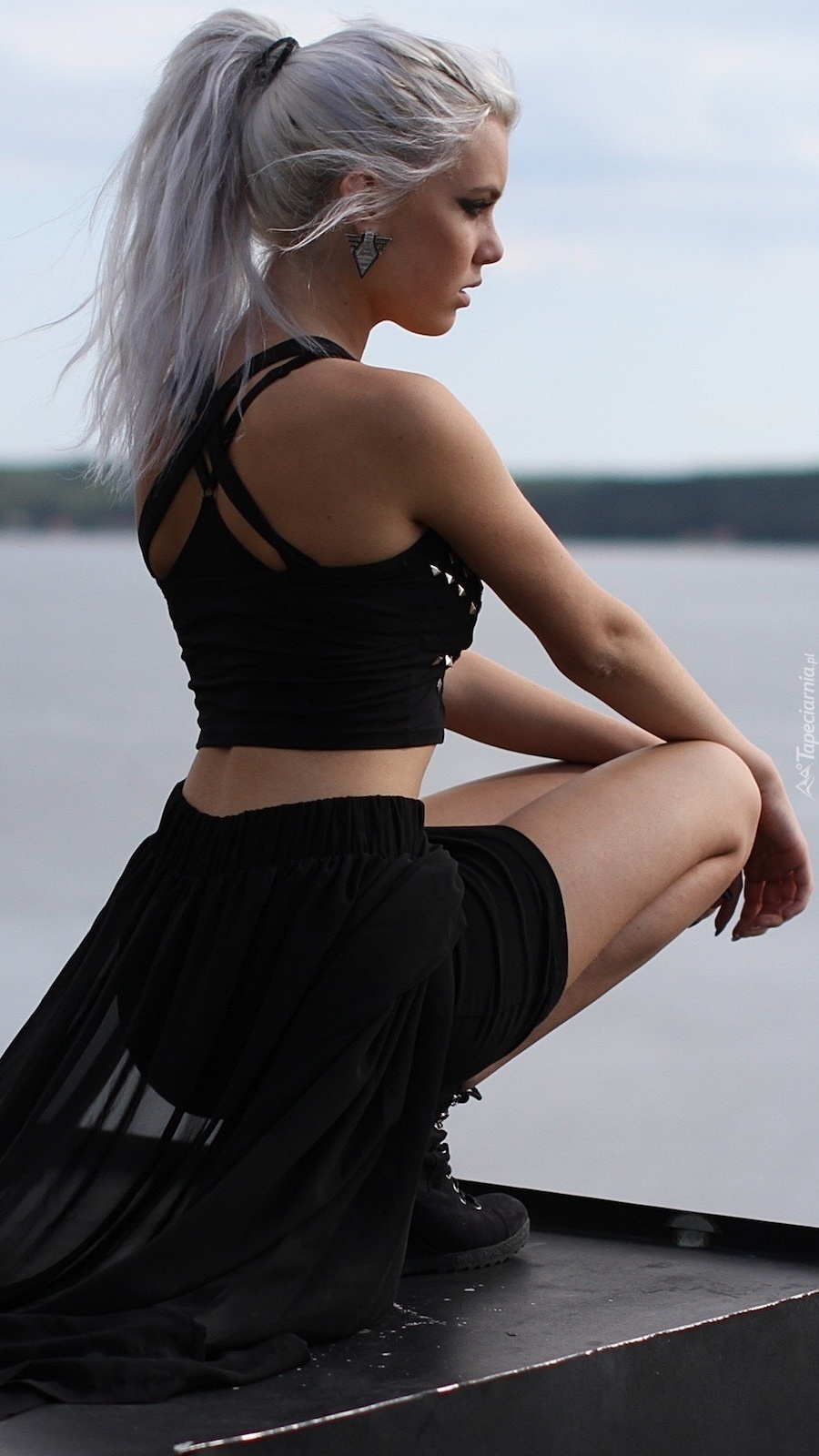 Edytor tapety: Dziewczyna na pomoście nad jeziorem