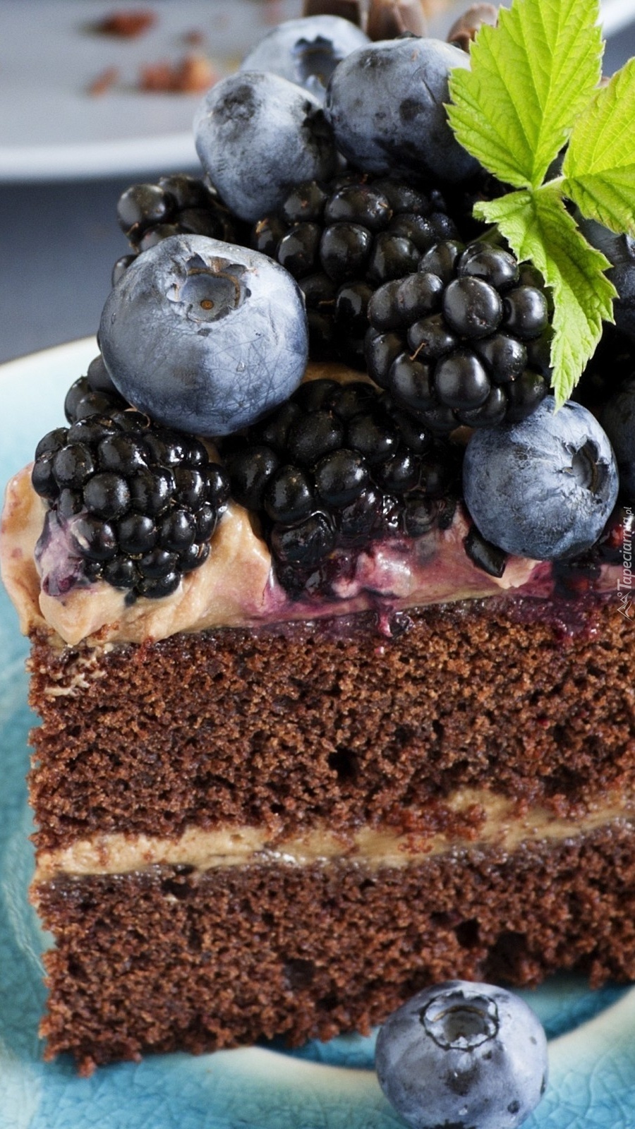 Edytor tapety: Owoce na kawałku tortu