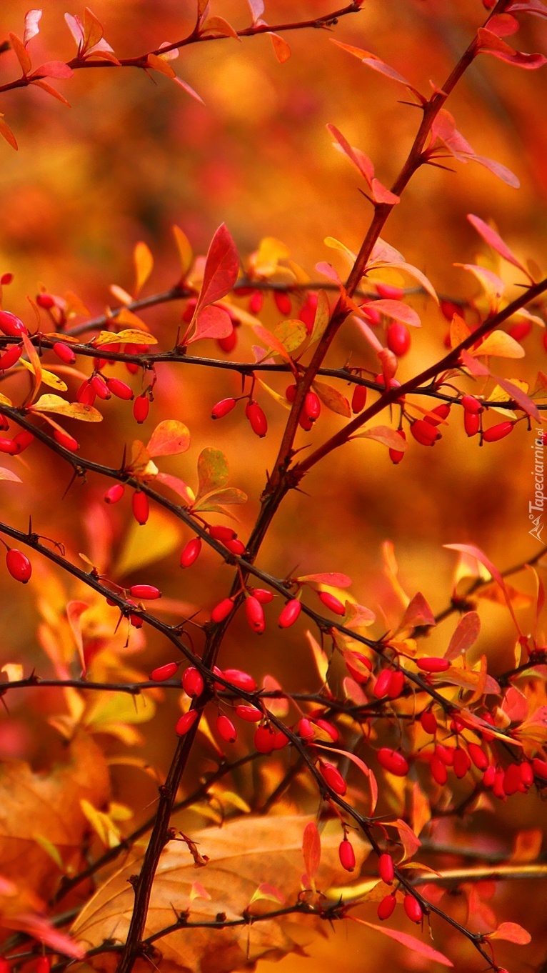 Edytor tapety: Krzew z kolcami i czerwonymi owocami