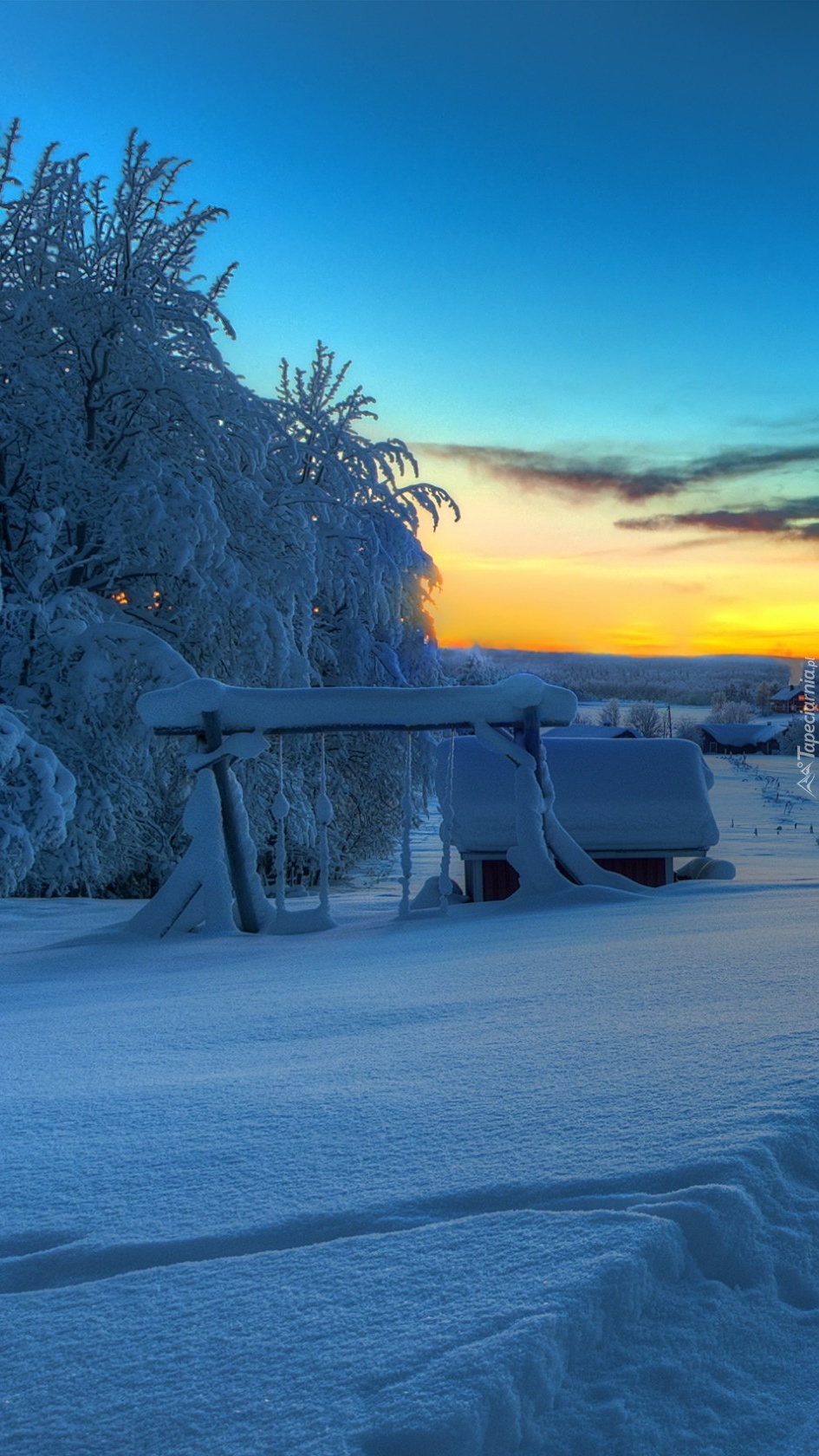 Edytor tapety: Wioska pod śnieżną pierzynką