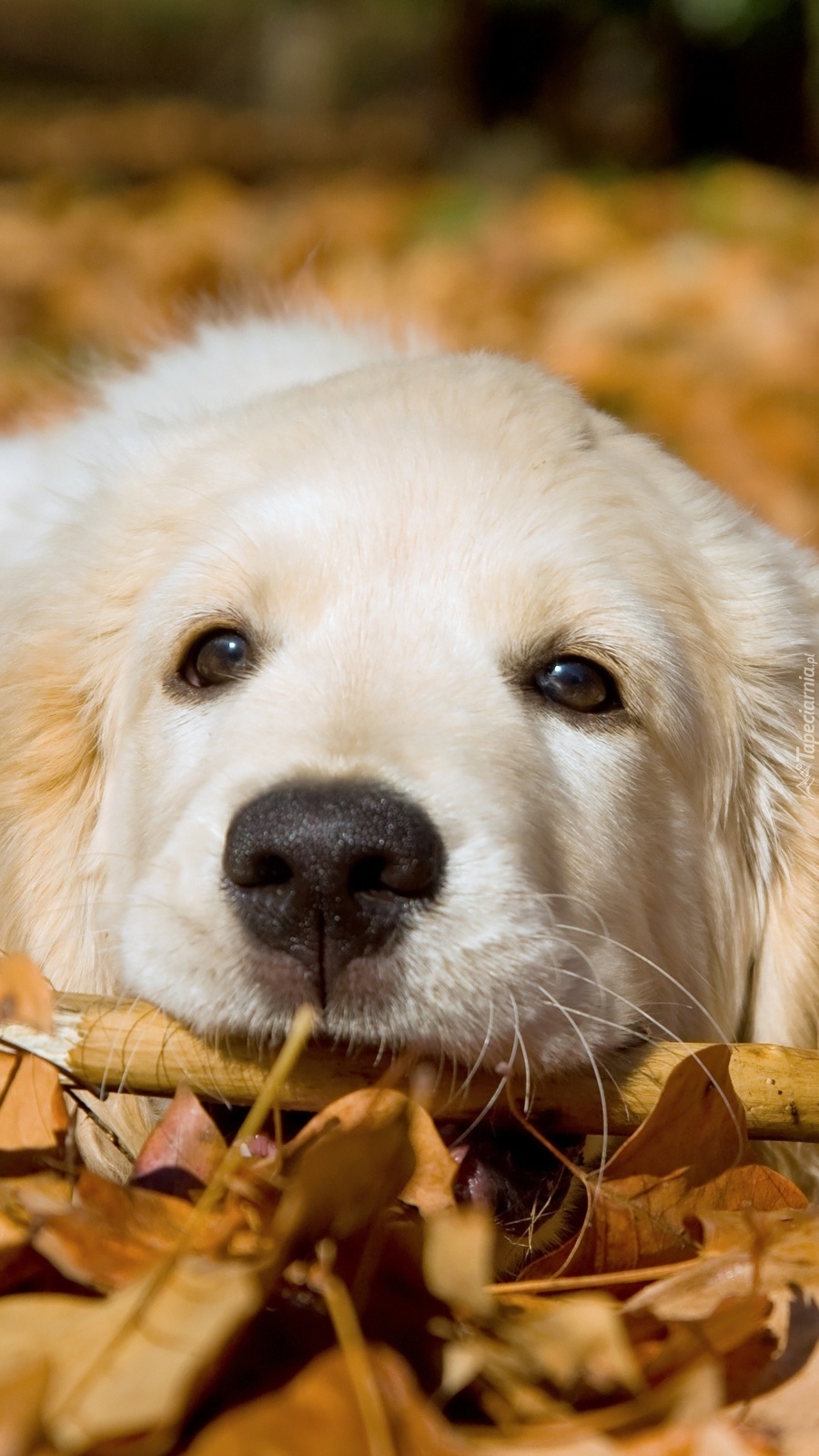 Edytor tapety: Golden retriever na jesiennych liściach