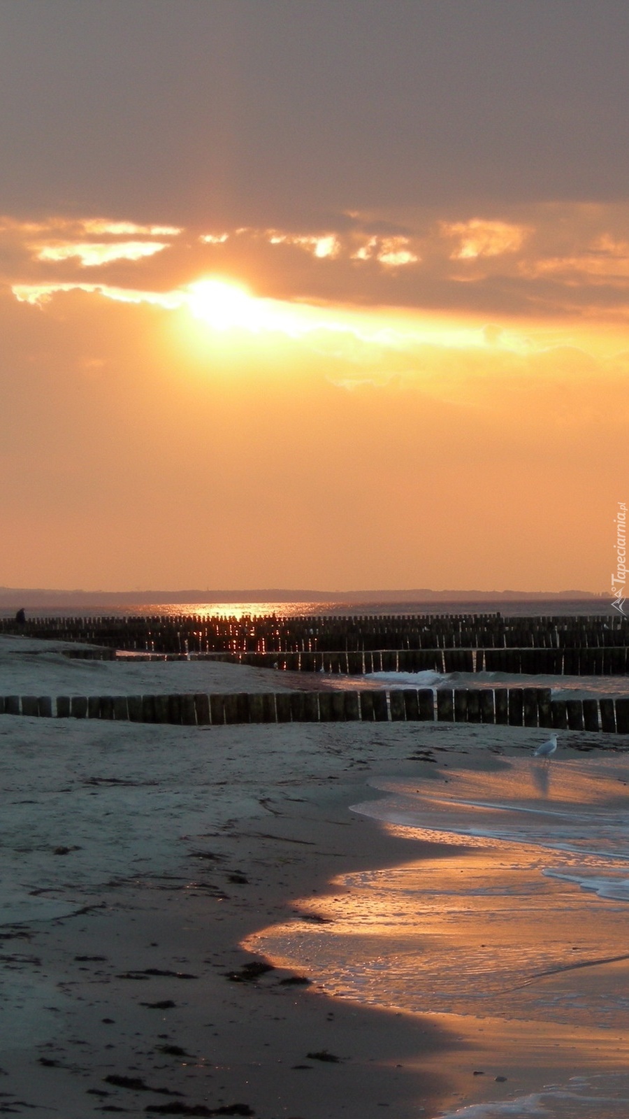 Edytor tapety: Falujące morze o wschodzie słońca
