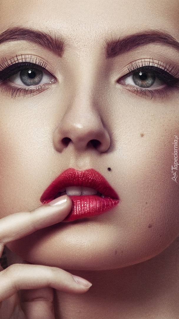 Edytor tapety: Kobieta z palcami przy ustach