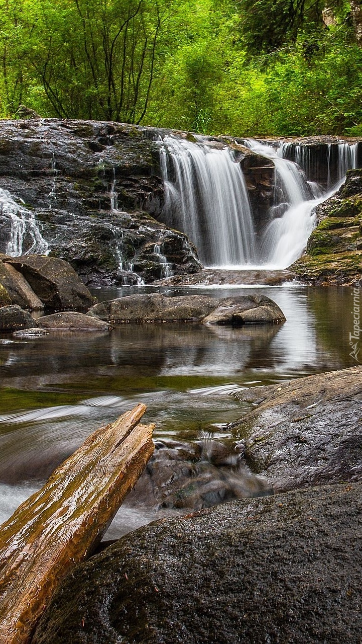 Edytor tapety: Leśna rzeka z wodospadem i kamieniami