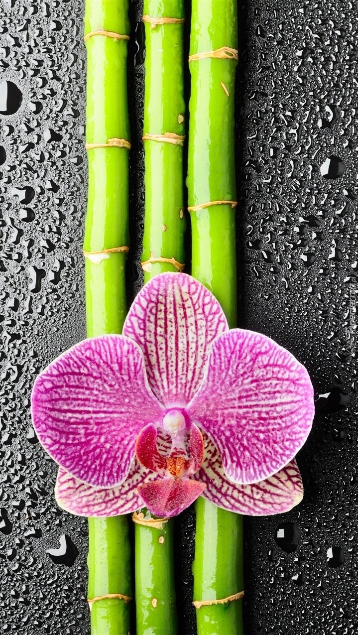 Edytor tapety: Storczyk na zielonych łodygach bambusa