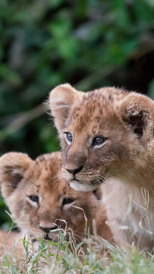 Edytor tapety: Dwa lwiątka na trawie