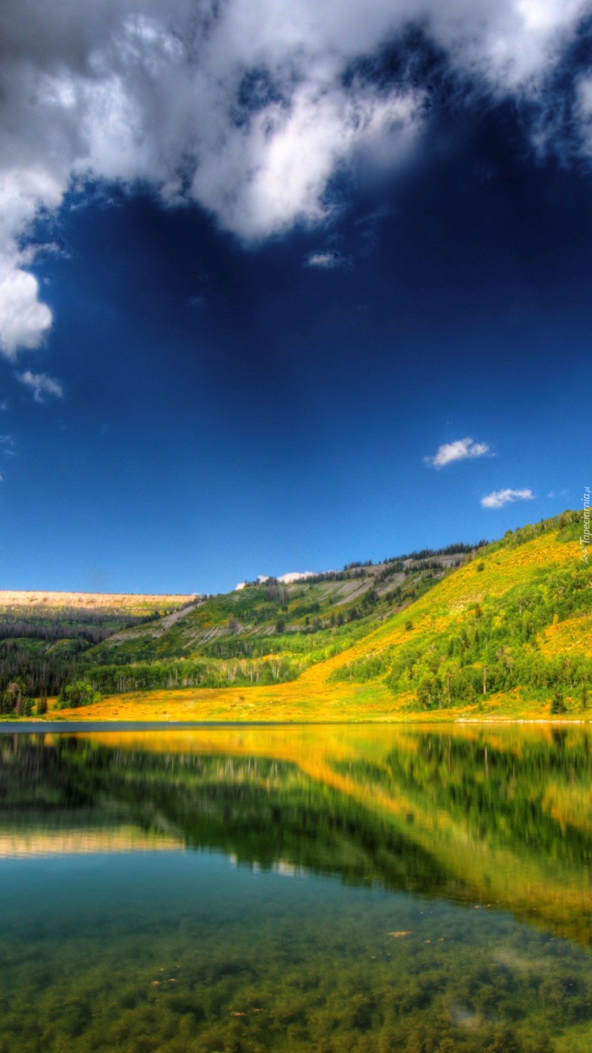 Edytor tapety: Las odbity w jeziorze