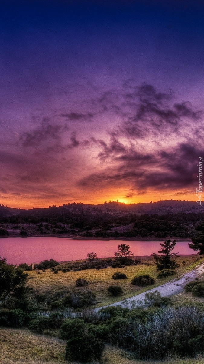 Edytor tapety: Zachód słońca nad jeziorem