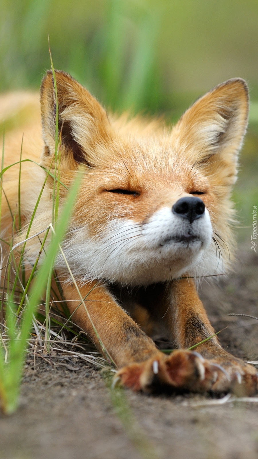 Edytor tapety: Zaspany lisek w zieleni