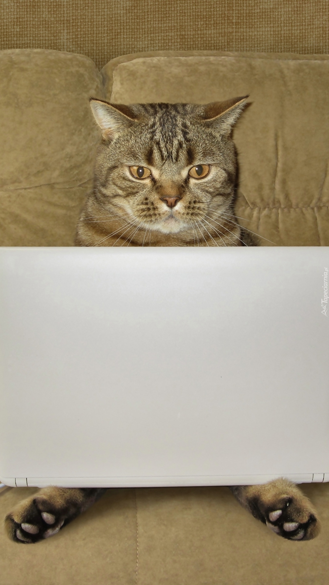 Edytor tapety: Kot na kanapie z laptopem
