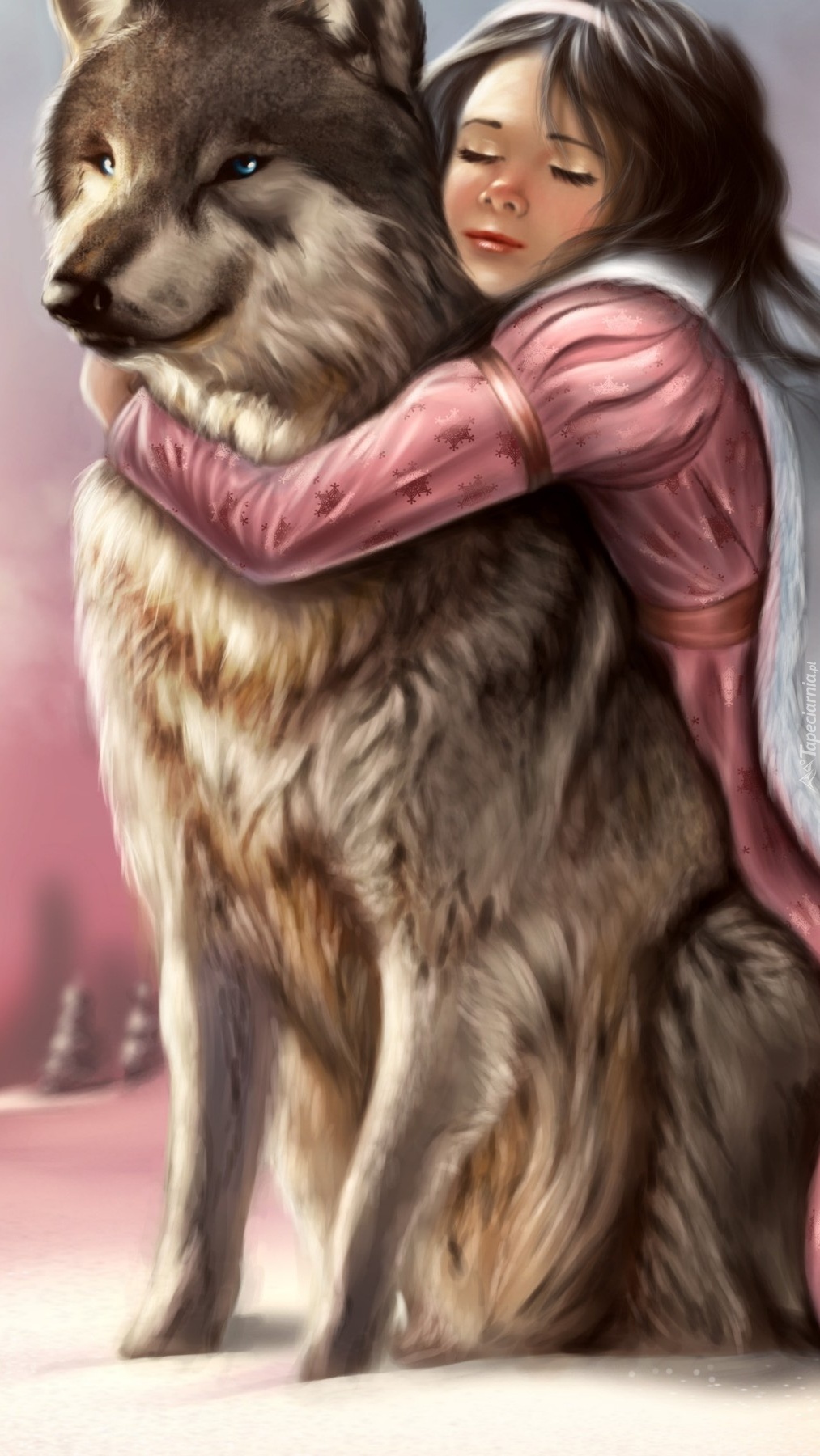 Edytor tapety: Przyjaźń dziewczyny z wilkiem