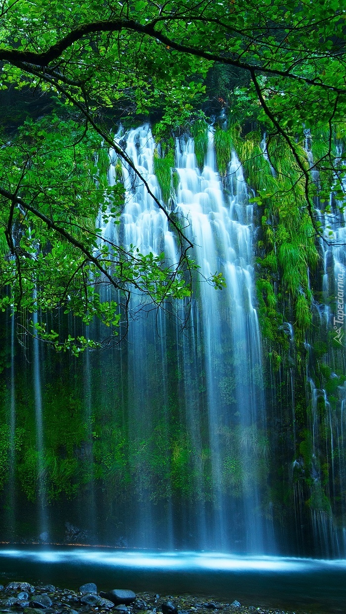 Edytor tapety: Wodospad pośród drzew