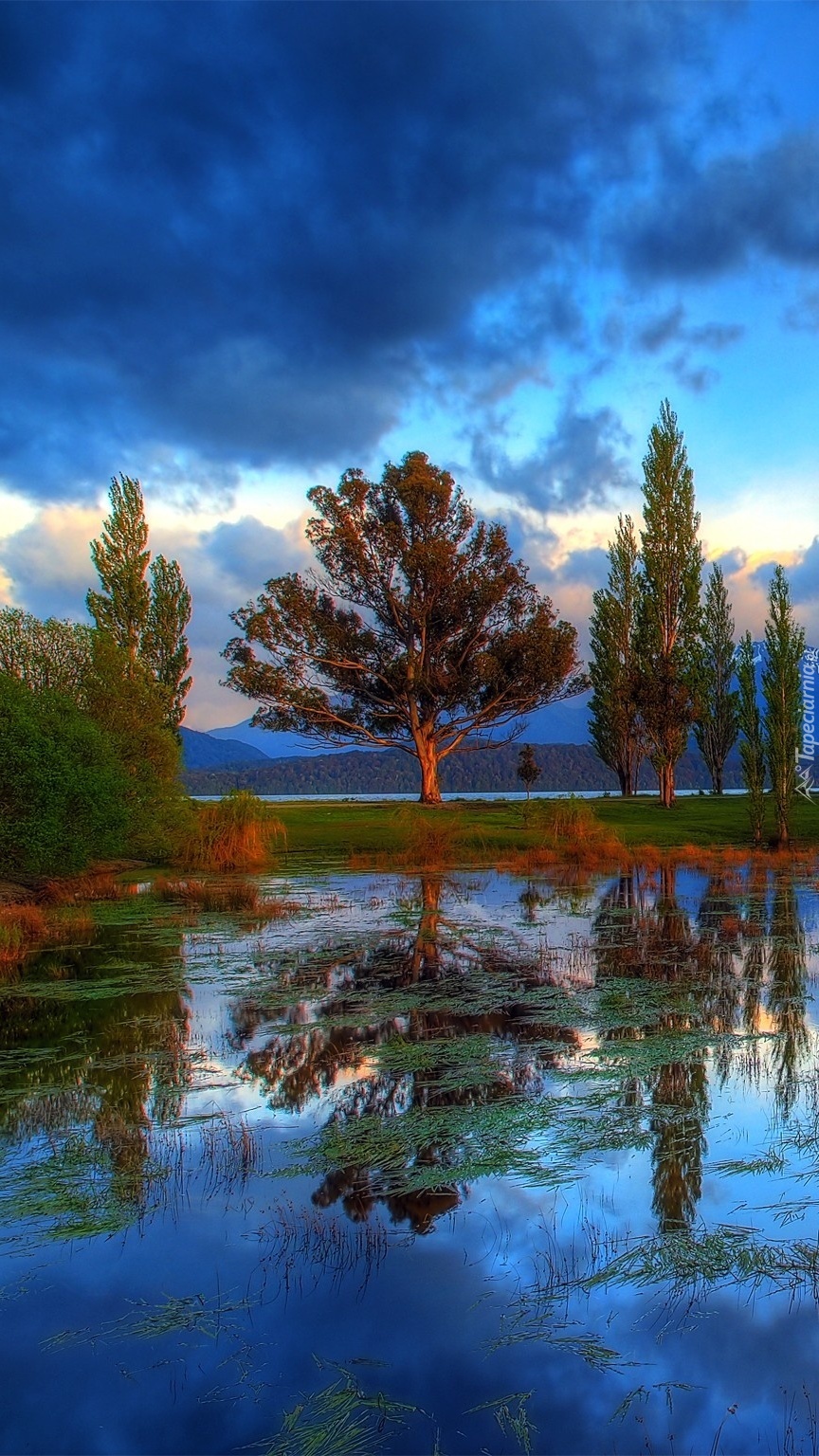 Edytor tapety: Drzewa odbite w jeziorze