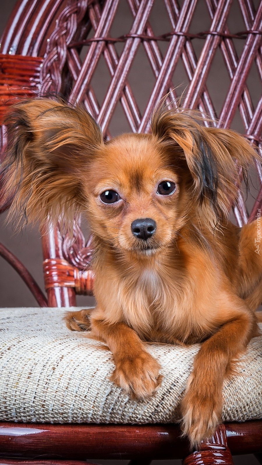 Edytor tapety: Papillon leży na krześle
