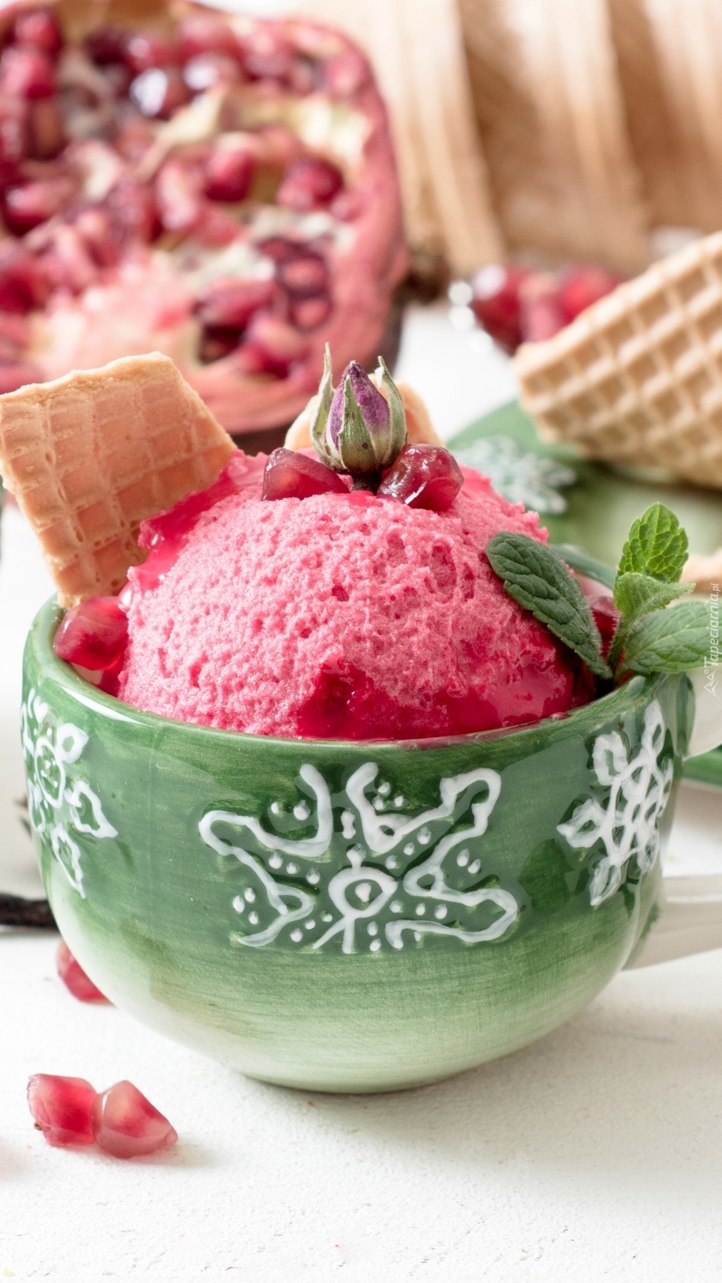Edytor tapety: Lody w filiżance z waflami