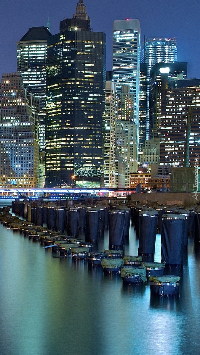 Edytor tapety: Oświetlone miasto nad rzeką