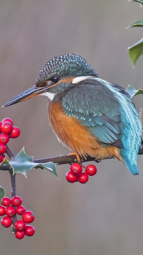 Edytor tapety: Zimorodek na gałązce ostrokrzewu