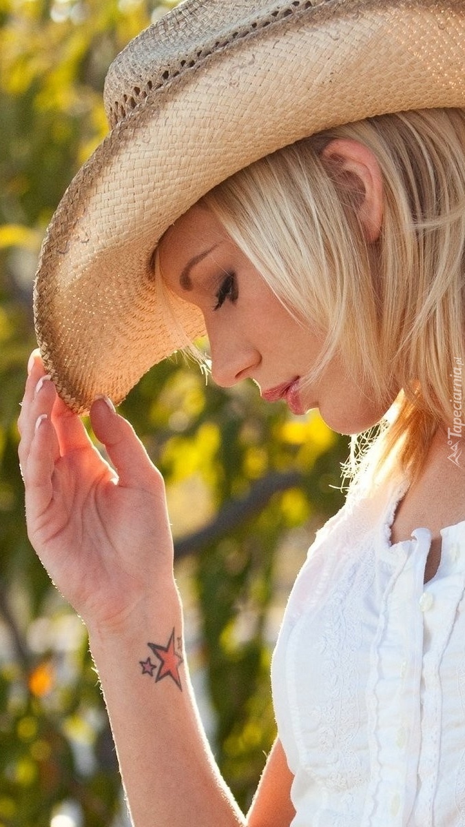 Edytor tapety: Zamyślona blondynka w kapeluszu