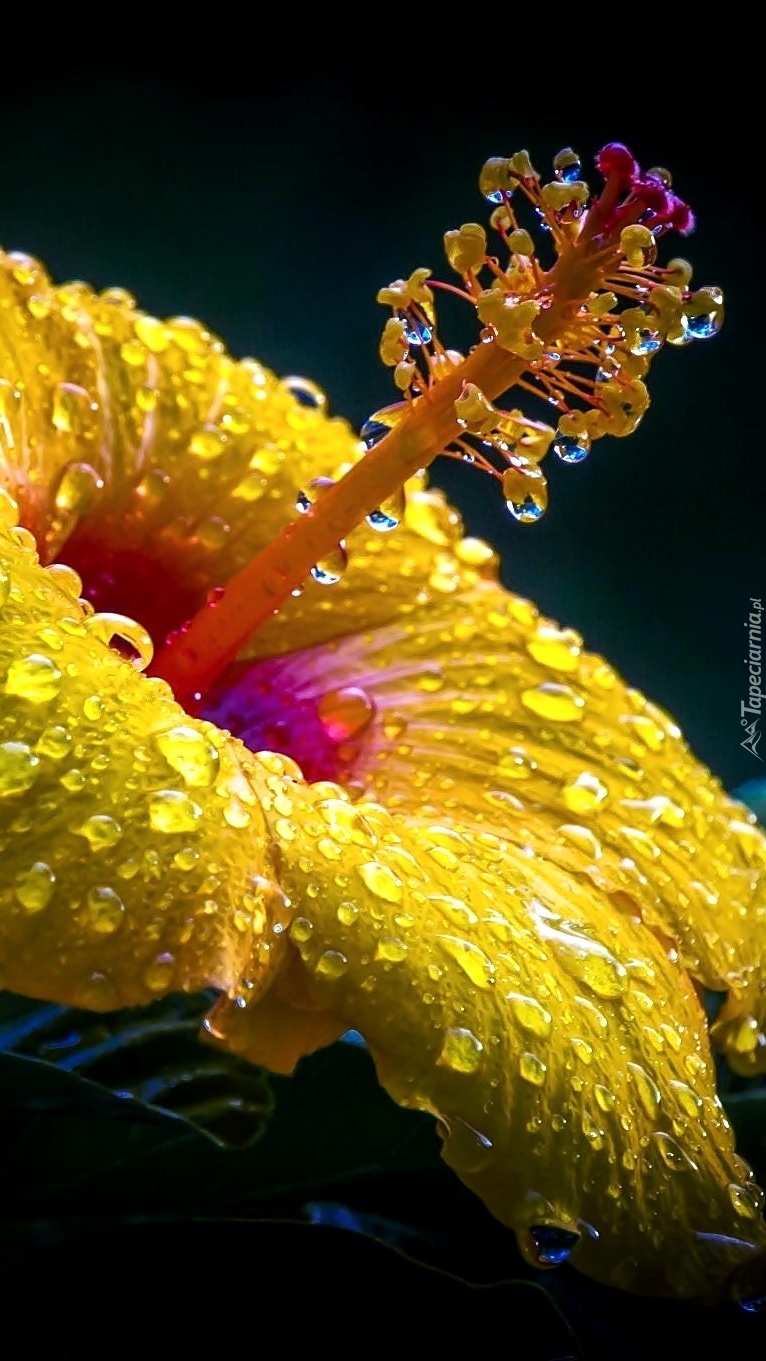 Edytor tapety: Hibiskus z kroplami deszczu