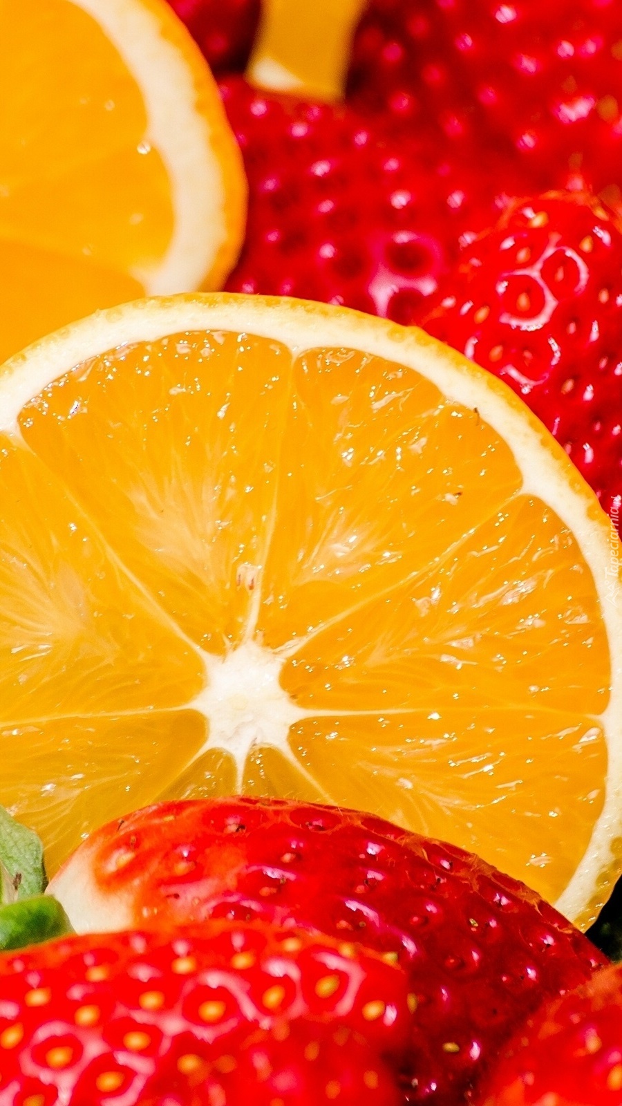 Edytor tapety: Plasterki pomarańczy otoczone truskawkami
