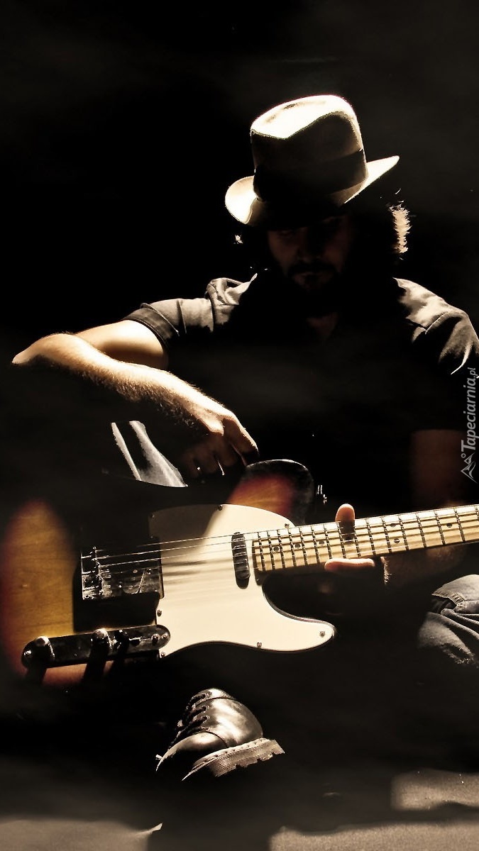 Edytor tapety: Mężczyzna w kapeluszu z gitarą
