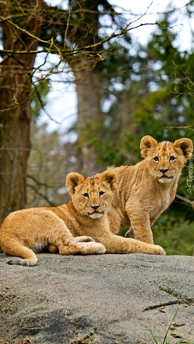 Edytor tapety: Dwa lwiątka na skale