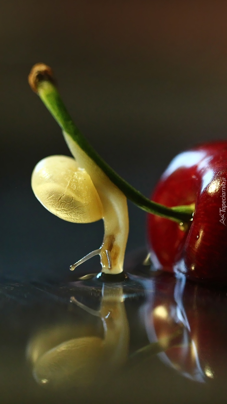 Edytor tapety: Czereśnia przysmakiem dla ślimaka