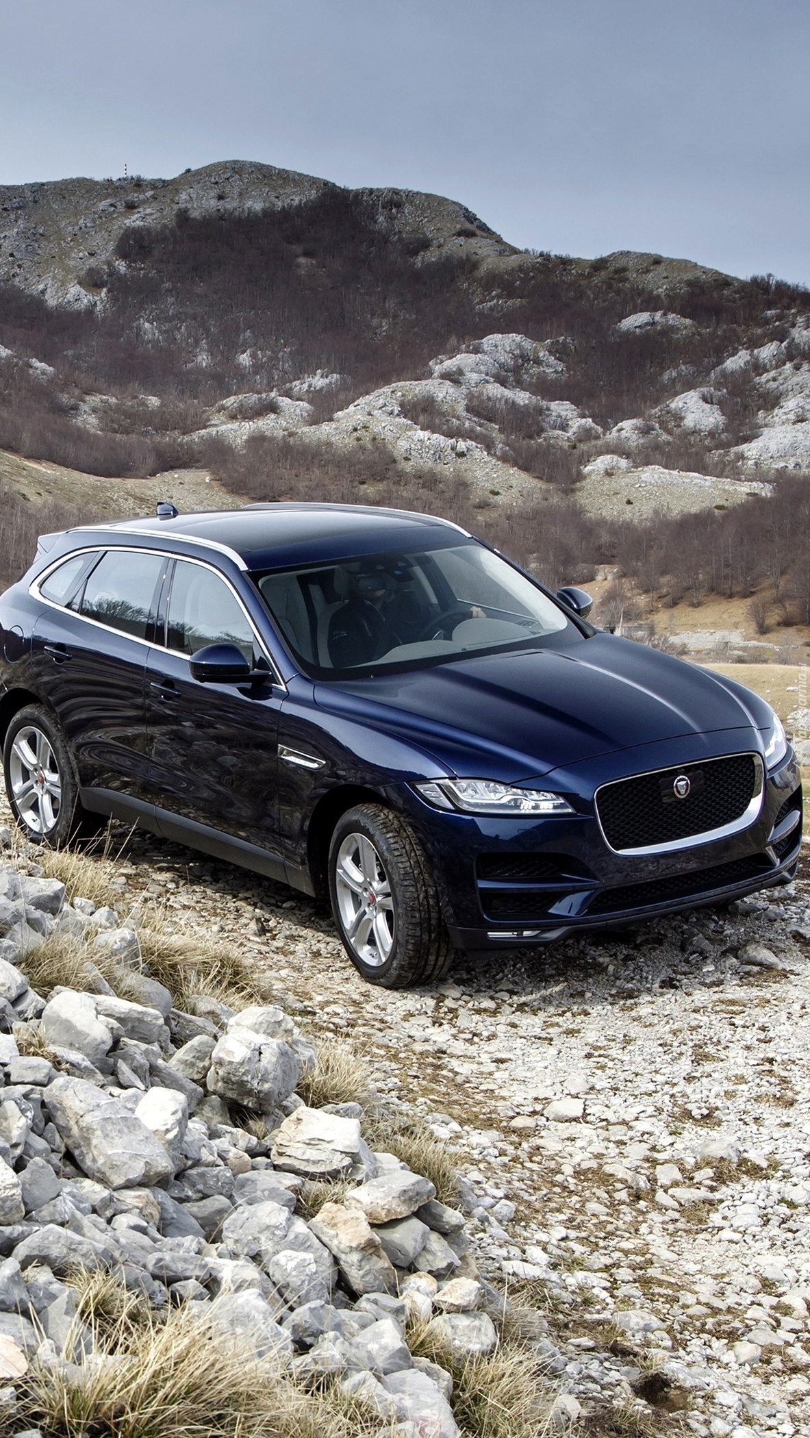 Edytor tapety: Jaguar F-Pace na kamienistej drodze