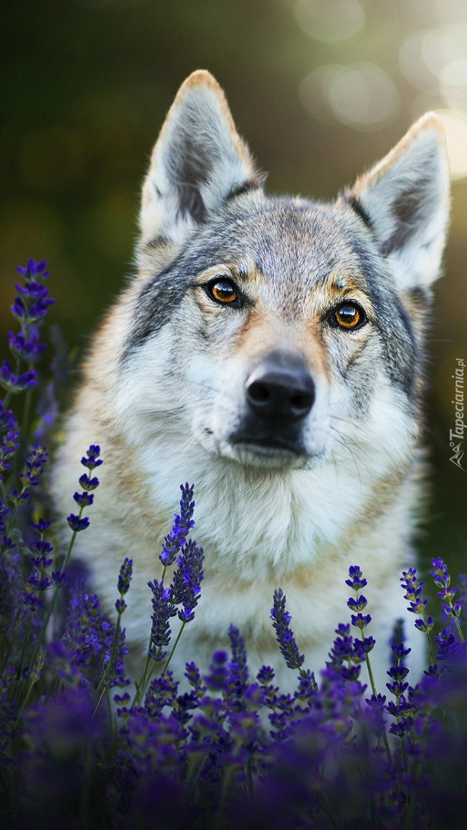 Edytor tapety: Wilczak czechosłowacki w lawendzie