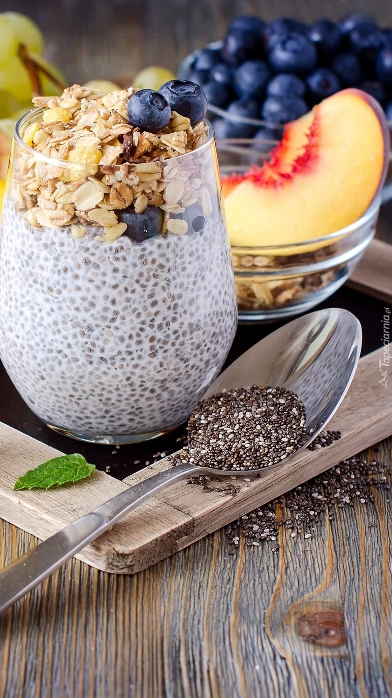 Edytor tapety: Owocowy deser i nasionka chia