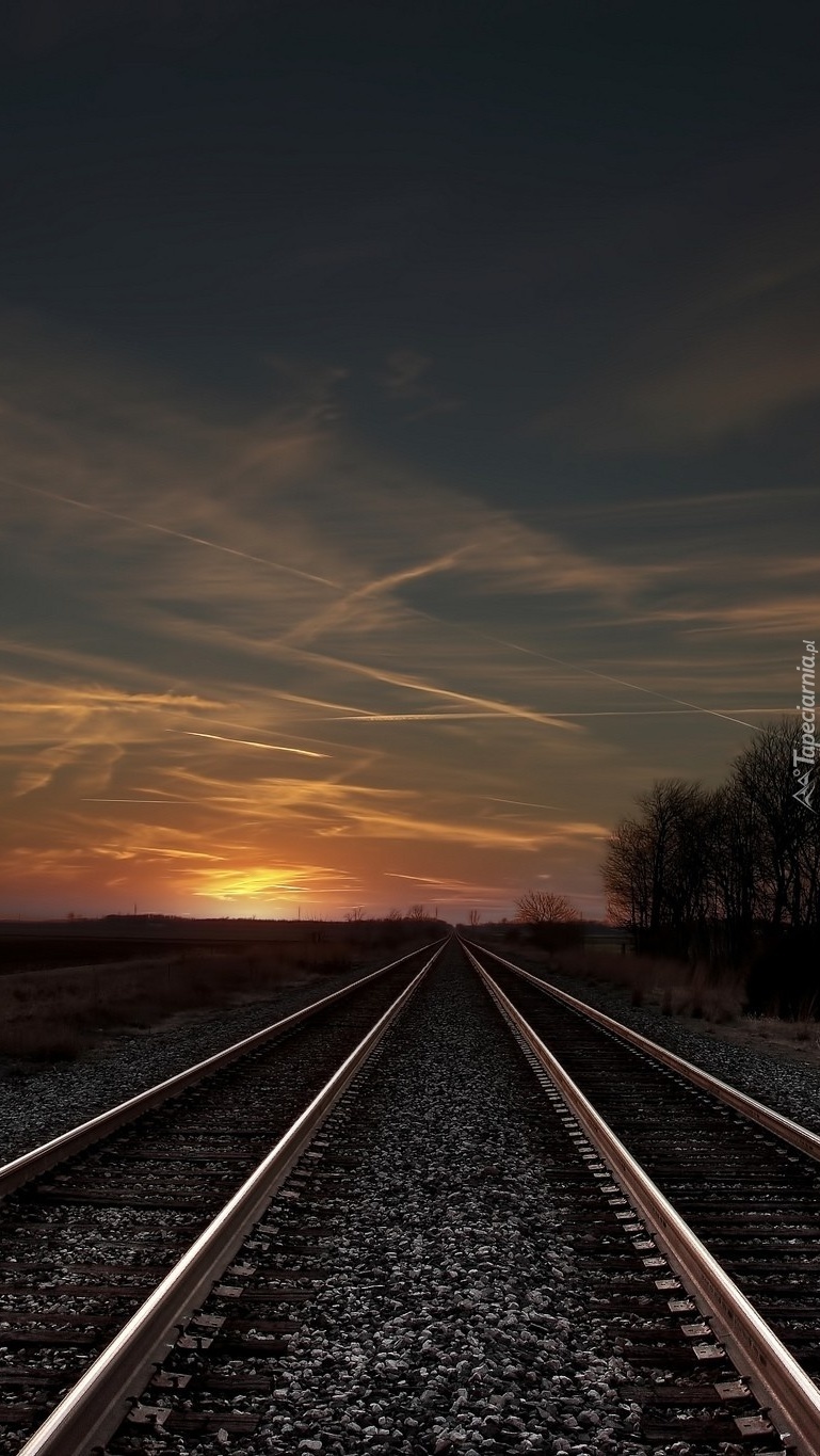 Edytor tapety: Zachód słońca nad torami kolejowymi