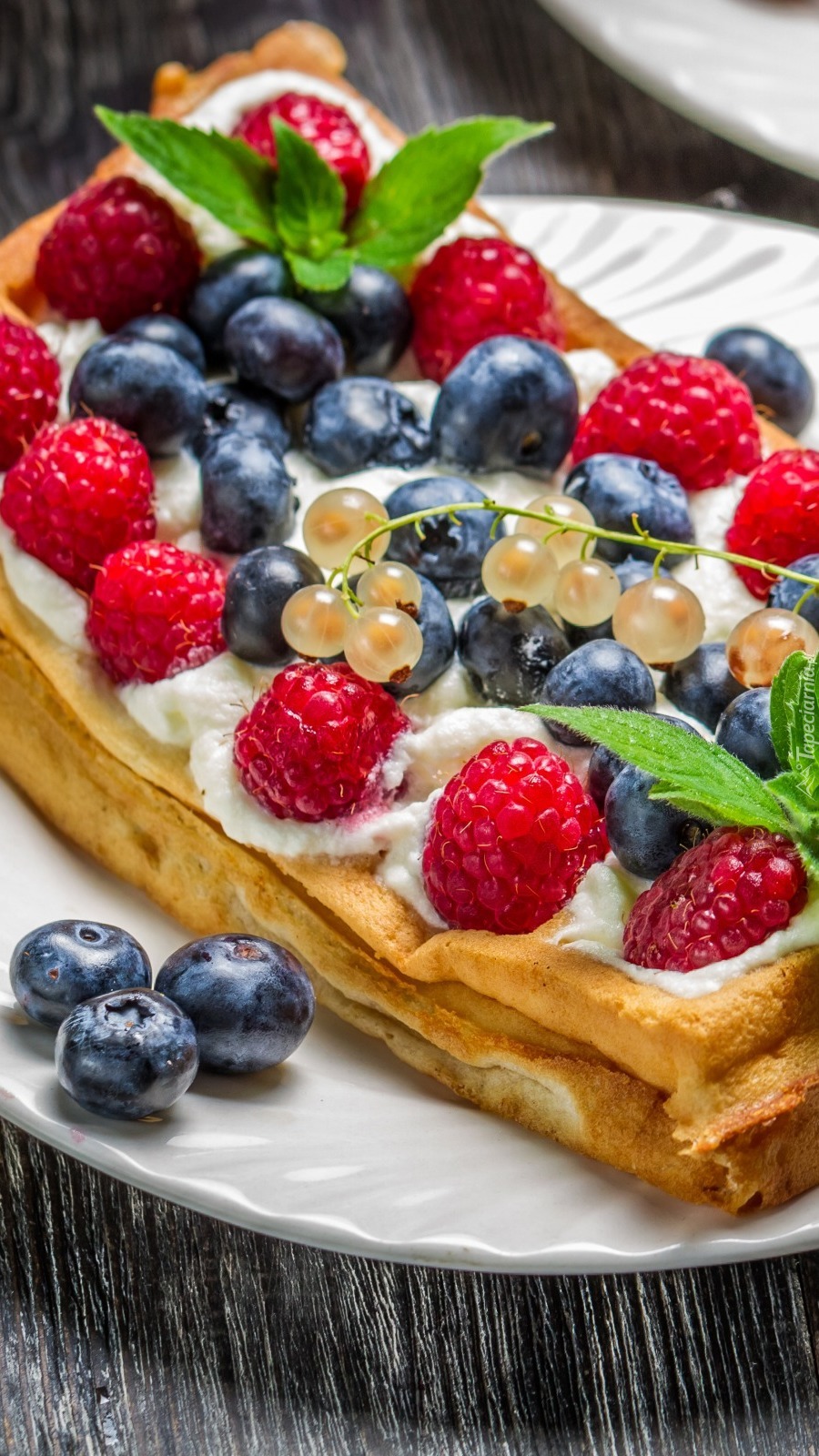 Edytor tapety: Gofr z bitą śmietaną i owocami