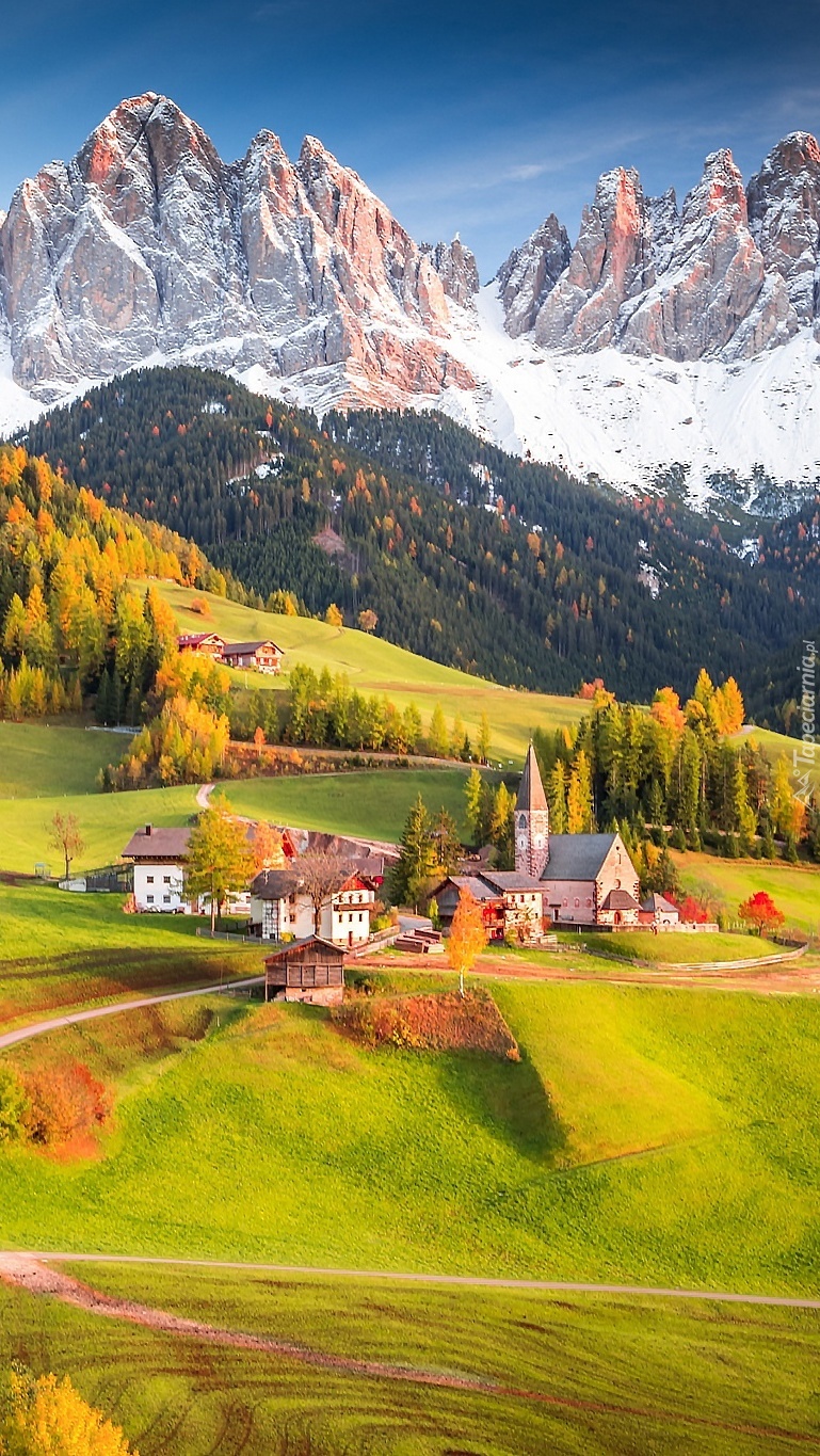 Edytor tapety: Wieś w dolinie Val di Funes