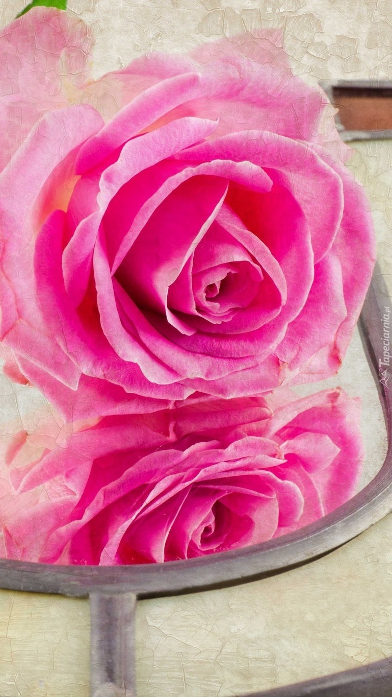 Edytor tapety: Różowa róża na lusterku