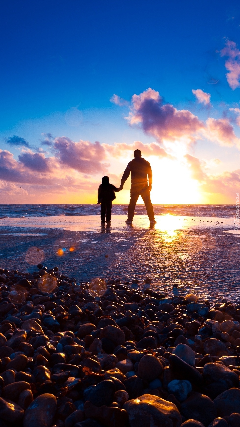 Edytor tapety: Mężczyzna z dzieckiem nad morzem