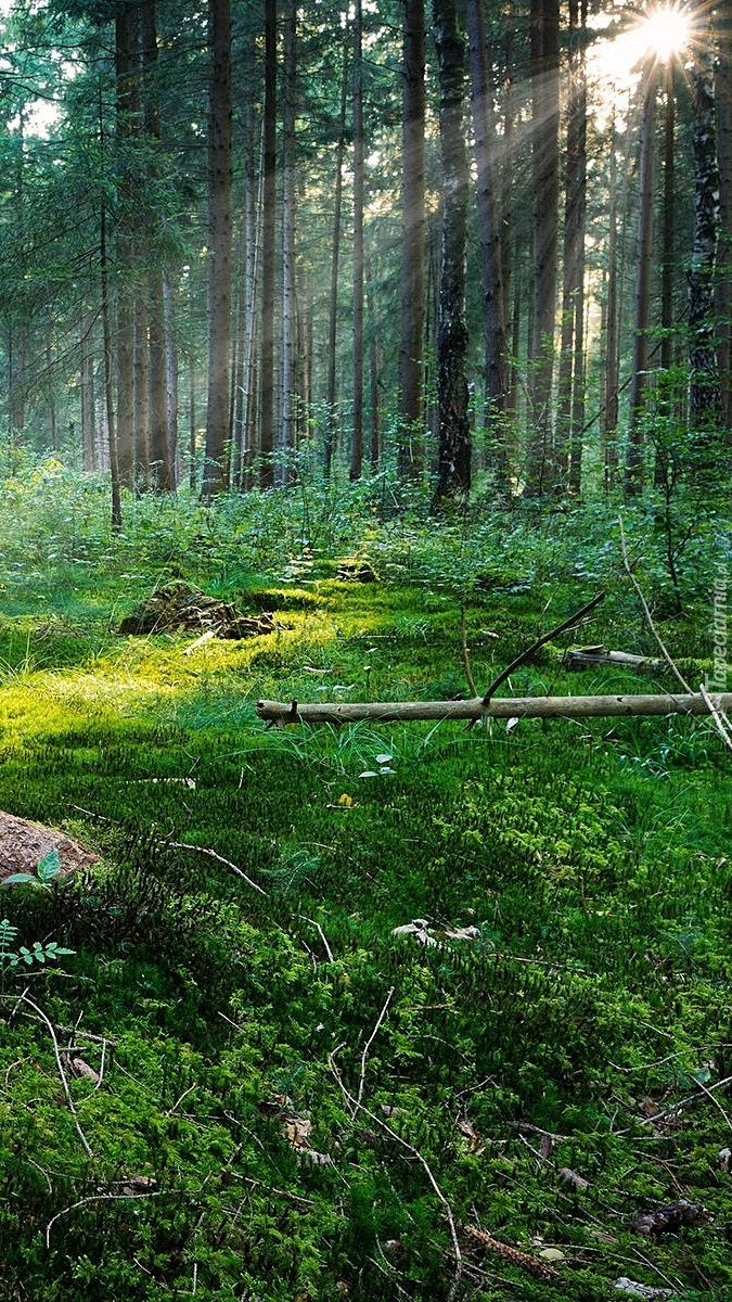 Edytor tapety: Promienie słońca w starym lesie