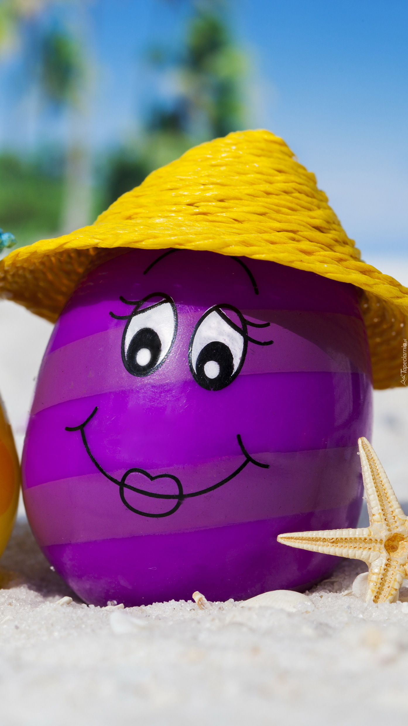 Edytor tapety: Jajko w kapeluszu na plaży