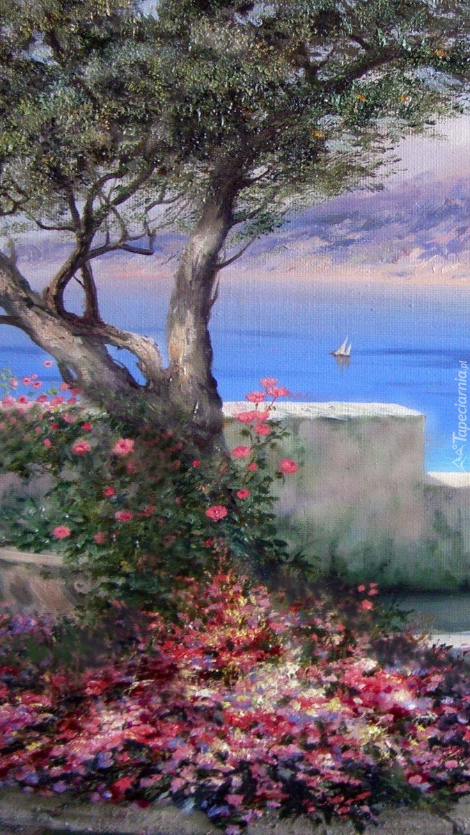 Edytor tapety: Drzewo przy murku nad wodą